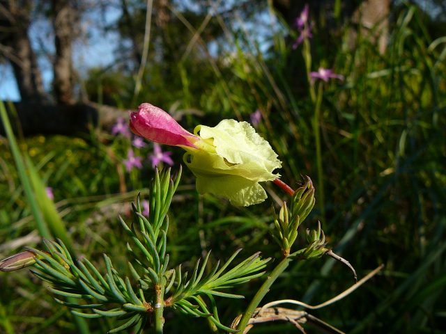 Dorothy often has locals walk by and compliment her fantastic efforts. Yet, she feels like weeding and revegetation “doesn’t feel like work” when she gets to experience the joy of finding a new native orchid and is able to free the Yellow Leschenaultia (Lechenaultia linarioides) to expose their showstopping flowers.