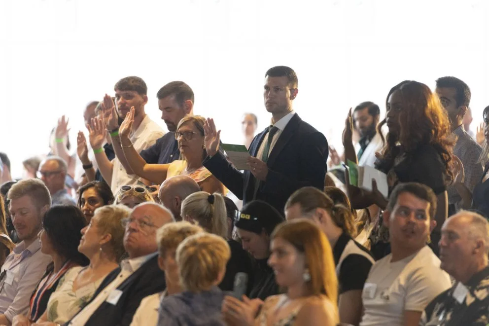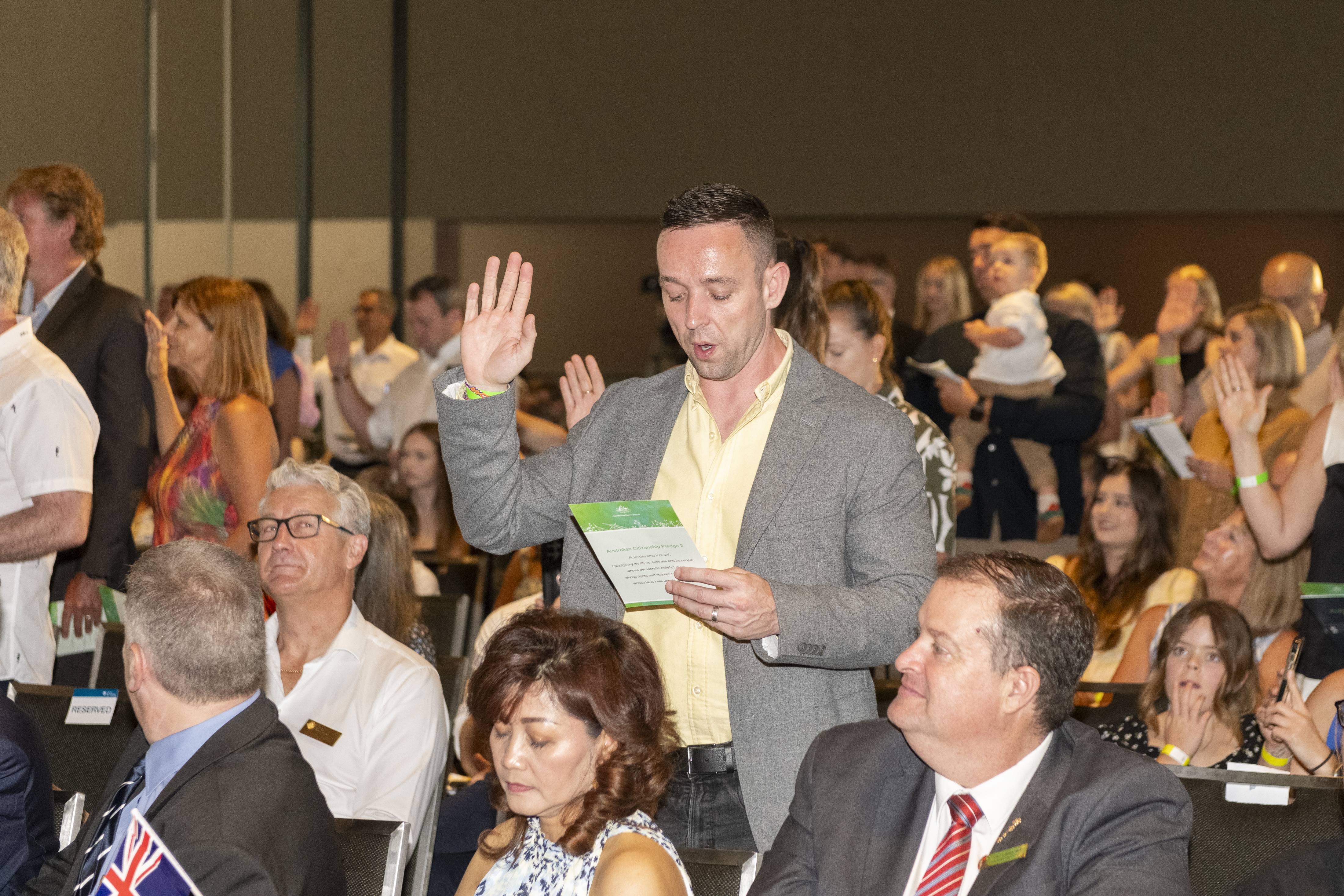 Candidates born overseas, including from Russia, Bulgaria, China, France, Mexico, Taiwan and Venezuela, who have chosen to call Australia home made their citizenship pledge in front of hundreds of families and friends.