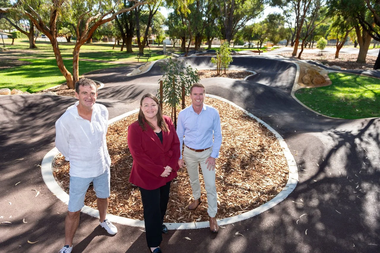 In May 2025, Joondalup Mayor Albert Jacob, North Central Ward Councillor Nige Jones and Joondalup MLA Emily Hamilton were in Heathridge to check out the track and upgraded park facilities.