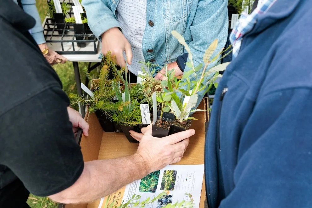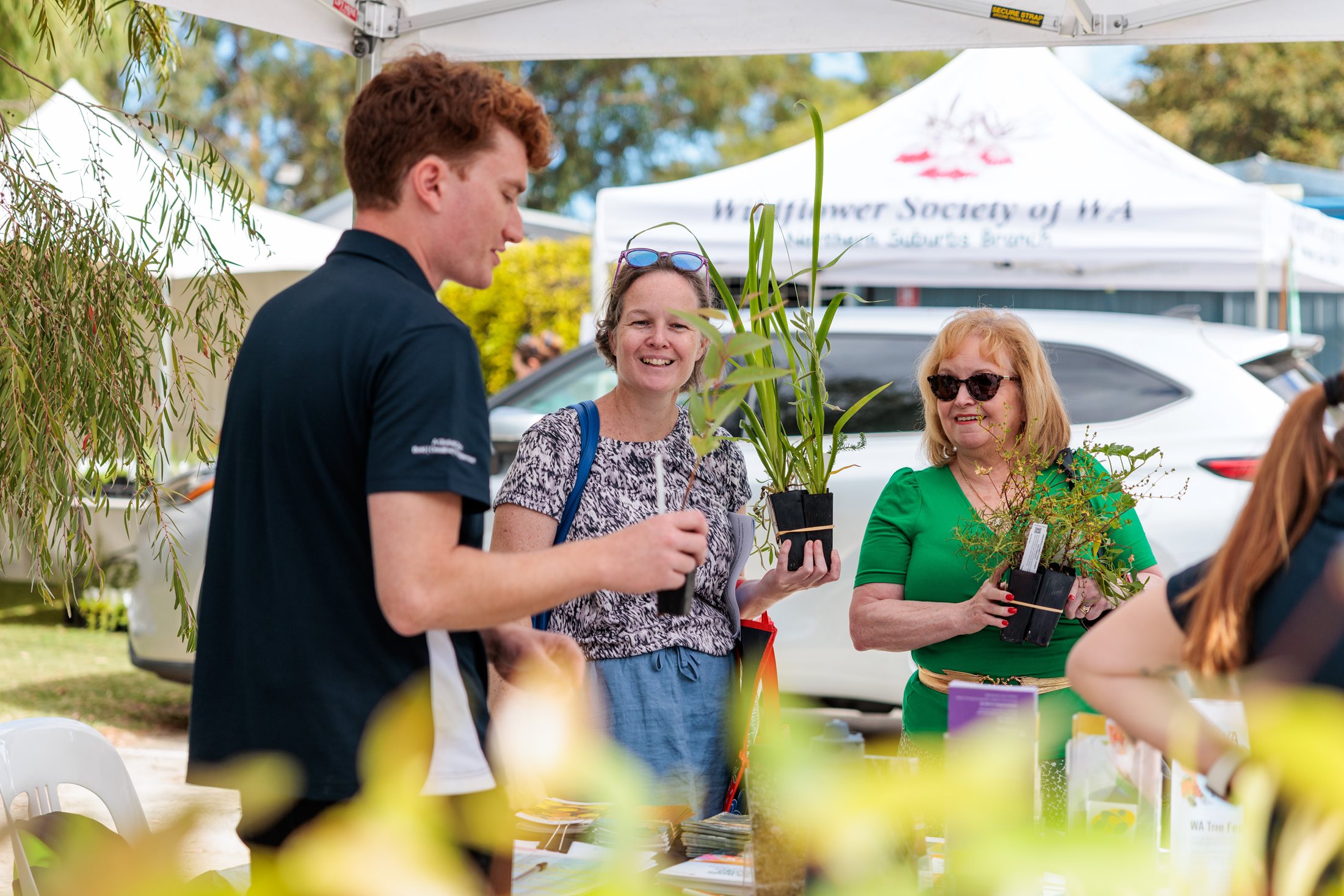 Several information stalls were available at the plant giveaway events, including a stall hosted by representatives from the Department of Primary Industries and Regional Development, where attendees learned how to identify and help prevent the spread of invasive pests like Polyphagous Shot-Hole Borer (PSHB). Attendees also had the chance to purchase additional plants and supplies to support their waterwise gardening projects.